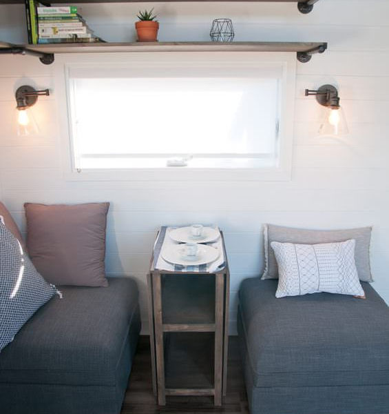 L’aire de vie principale est totalement personnalisable. Deux modules de sofa peuvent se placer ensemble ou séparés afin d'offrir une aire de repos ou un espace pour manger, jouer à des jeux ou recevoir des gens. Les modules servent également de rangement, avantage non-négligeable dans un petit espace.